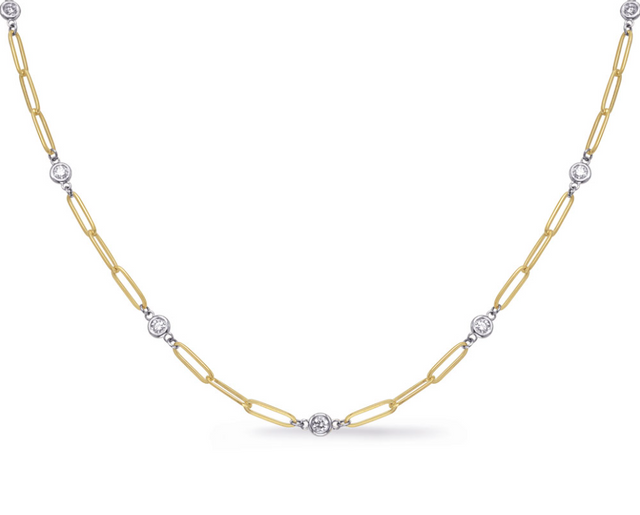14K Two Tone Diamond Bezel Paperclip Station Necklace 1.00Ct Total Diamond Weight (18in)