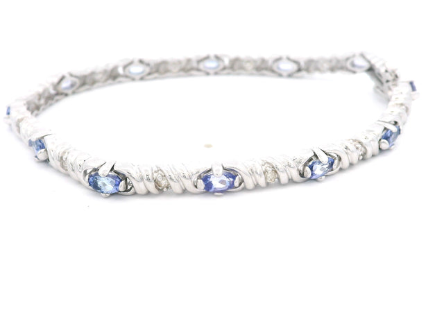 14K White Gold Tanzanite & Diamond Bracelet .35ctw (7in)