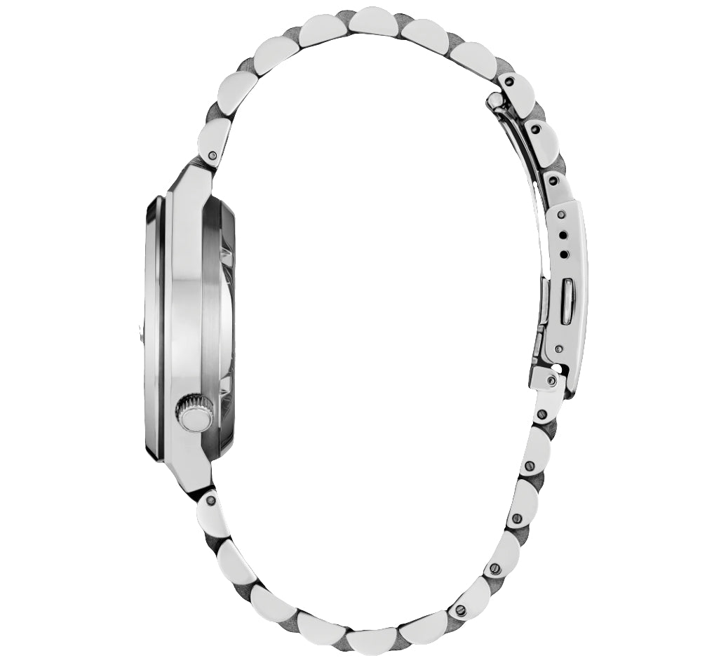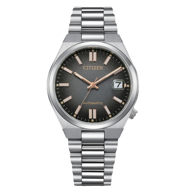 The TSUYOSA Automatic, from the NJ020 series, brings ultramodern sports styling right to your wrist. This edition, the TSUYOSA “Time Slip”, is executed in a versatile 37mm footprint, the sophisticated design of the watch delivers a strong impression via a silver-tone stainless steel case and a seamlessly integrated, matching bracelet. Underneath an anti-reflective sapphire crystal, the sporty timepiece makes use of a gradient black dial, with a 3 o’clock date window and contrasting gold-tone details adding to its eye-catching configuration. Powered by an automatic movement with a 42-hour power reserve and offering up to 50 meters of water resistance, the refined timepiece is a daily-wear choice ready for work, play, and everything in between. Caliber 8210.