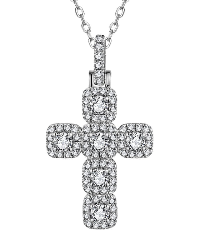 14K White Gold Halo Diamond Cross Pendant .87Ct Total Diamond Weight