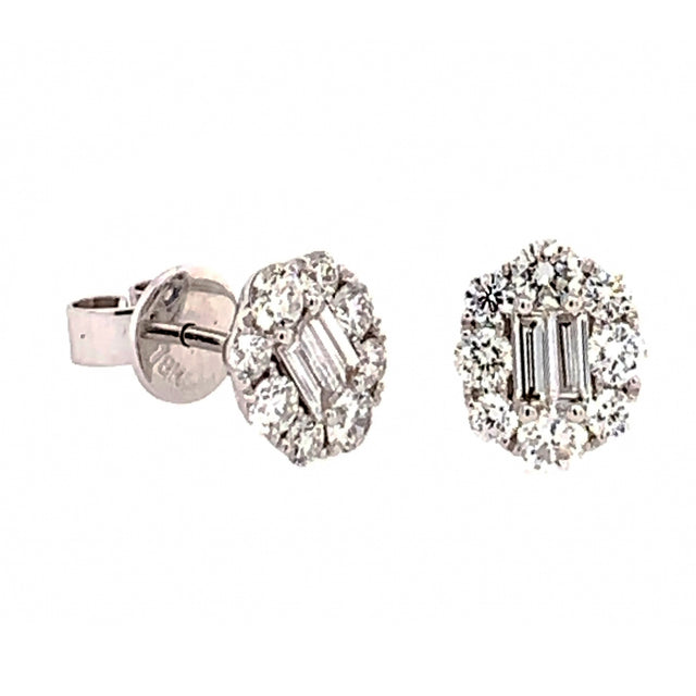 Almor Design Baguette & Round Diamond Halo Stud Earrings
