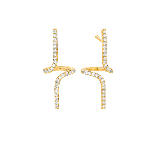 14K Yellow Gold Vertical Swirl Diamond Earrings .34Ct Total Diamond Weight