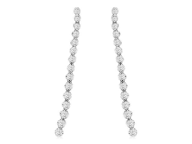 14K White Gold Graduated Diamond Screw-Back Dangle Earrings 1.65Ct Total Diamond Weight