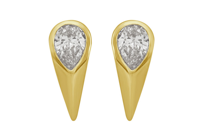 14K Yellow Gold Pear Diamond Fang Studs .29Ct Total Diamond Weight