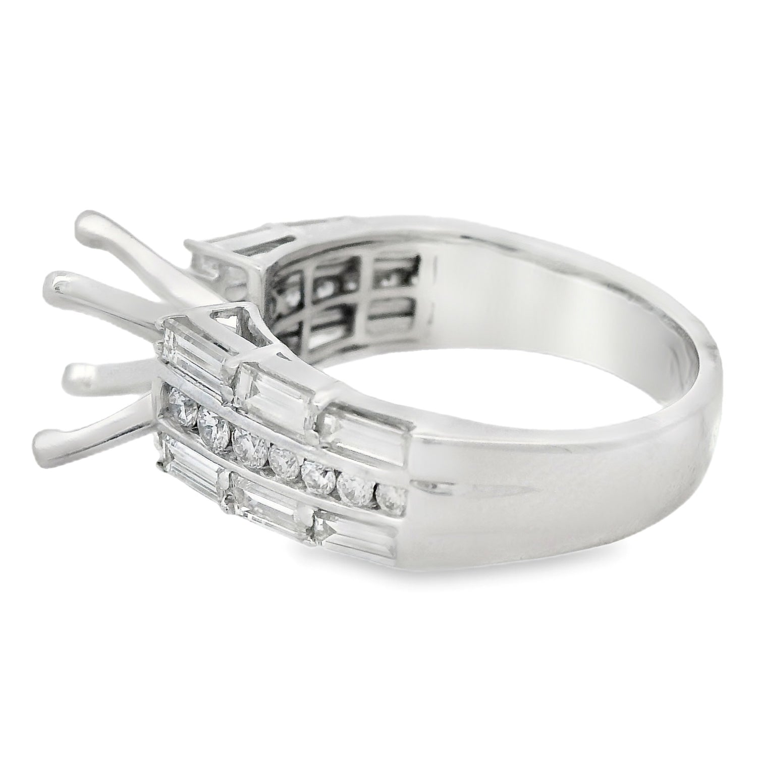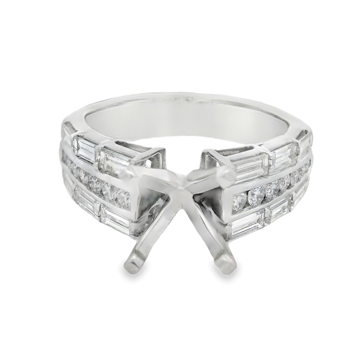 14K White Gold Round & Baguette Diamond Cathedral Semi Mtg 1.20Ct Total Diamond Weight