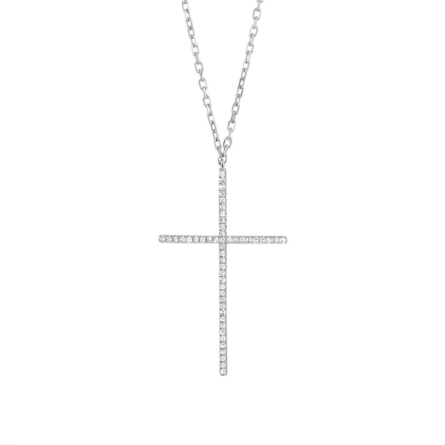14K White Gold Thin Diamond Cross Pendant .14Ct Total Diamond Weight