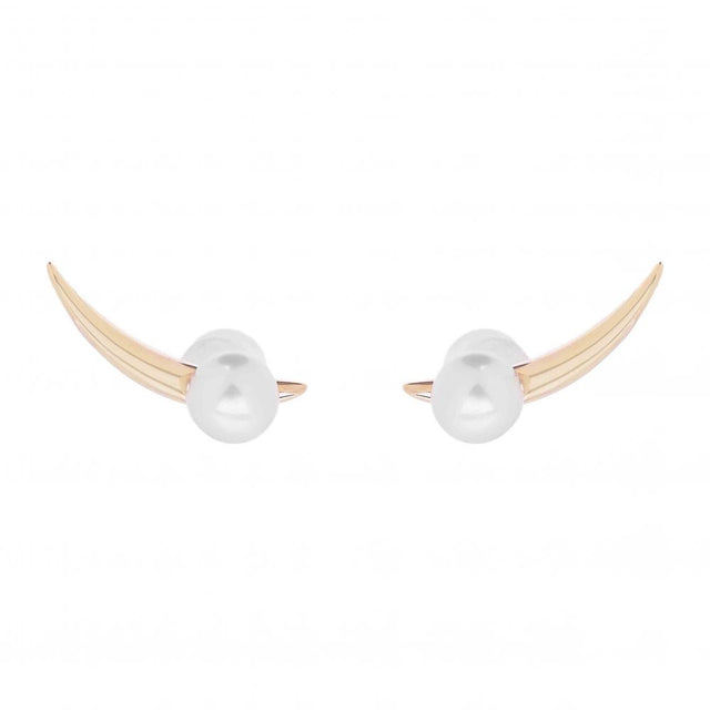 These earrings feature a freshwater pearl accented by 14K gold metal work designed to gracefully follow the contour of the ear for an eye-catching silhouette.
