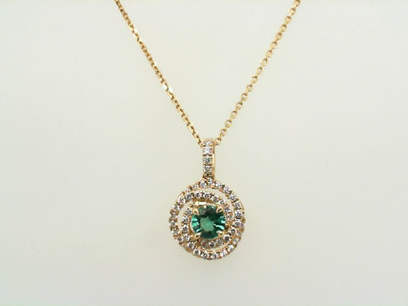 Yellow Gold Emerald and Diamond Swirl Pendant