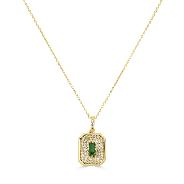 14K Yellow Gold Pave' Diamond Baguette Emerald Dog-Tag Pendant .32EM/.26Di (18in Chain Included)