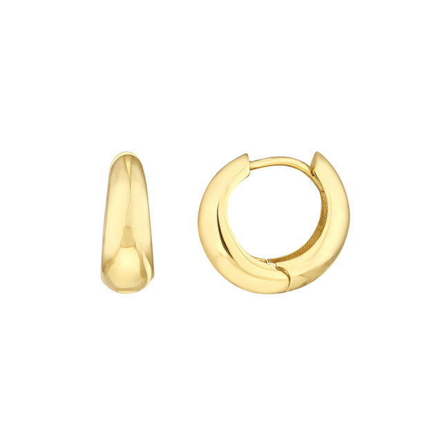 The Midas Graduating Gold Hoop Earrings are a stunning representation of classic elegance paired with a contemporary flair. Crafted meticulously from 10k yellow gold, these earrings showcase a unique graduating design that widens as it curves, offering a bold and dynamic silhouette. Their polished finish ensures a radiant shine, reflecting light beautifully and adding a luxurious touch to any look.