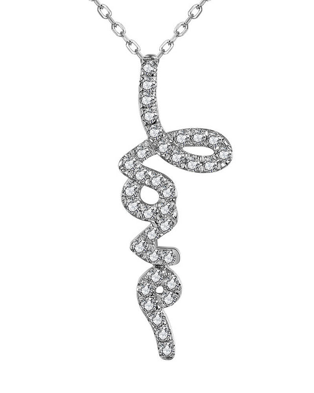 14K White Gold Cursive Diamond "LOVE" Pendant .29Ct Total Diamond Weight