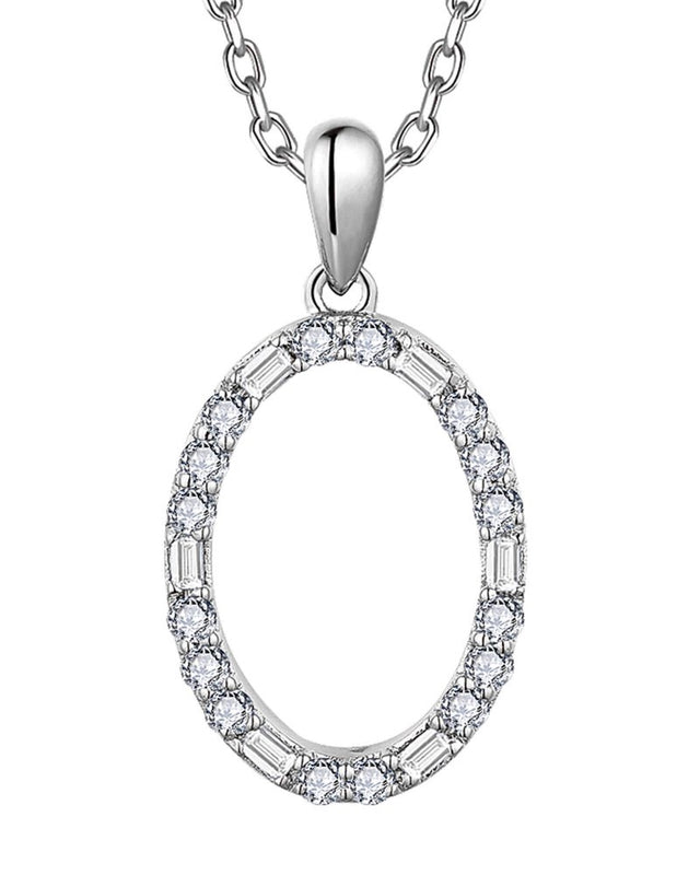 14K White Gold Open-Oval Round & Baguette Diamond Pendant .25Ct Total Diamond Weight