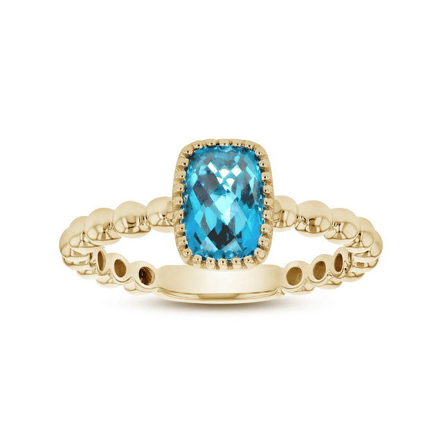 14YG Rectangular Cushion Blue Topaz Beaded Stackable Ring (7x5)