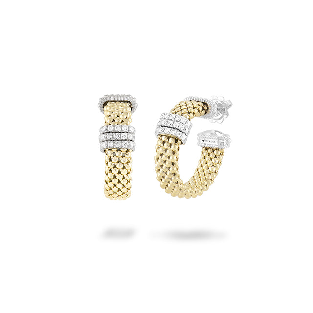 18K Two Tone 'Woven' Diamond Accented Hoops .51Ct Total Diamond Weight