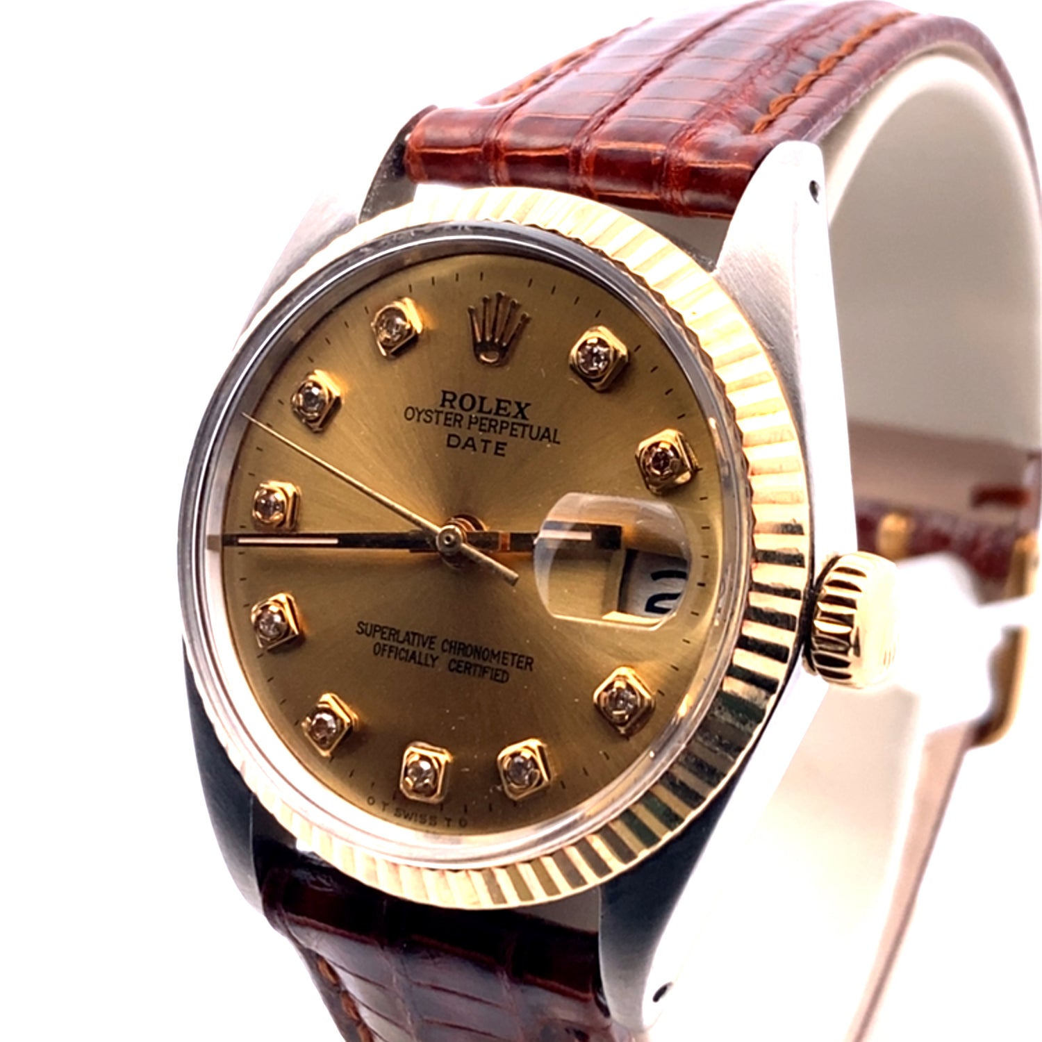 1965 Rolex Date 34mm Vintage 14K Fluted Custom Diamond Dial Model:1500