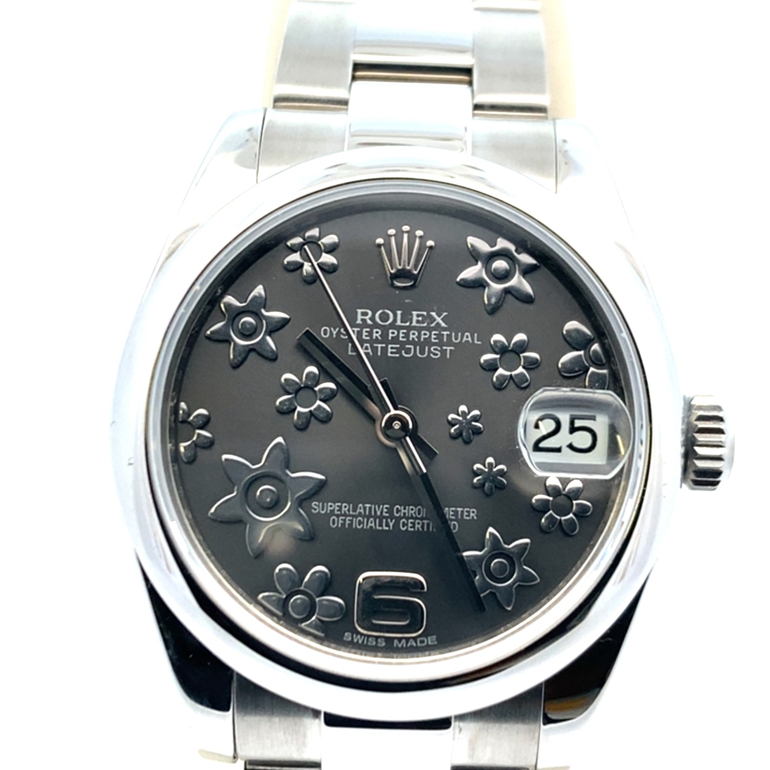 2012 Rolex Datejust Midsize 31mm Rhodium Floral Steel Oyster 178240 2 Year Warranty Serial F1679XXX