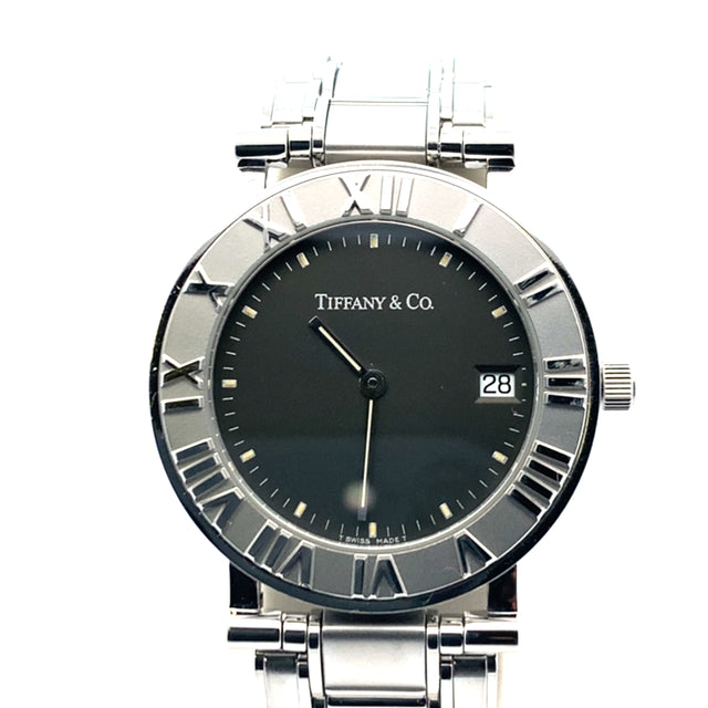 Tiffany & Co. Atlas Quartz Watch with Black Dial and Stainless Steel (B&Booklet)