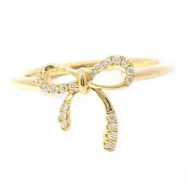 14K Yellow Gold Diamond Bow Ring .07Ct Total Diamond Weight