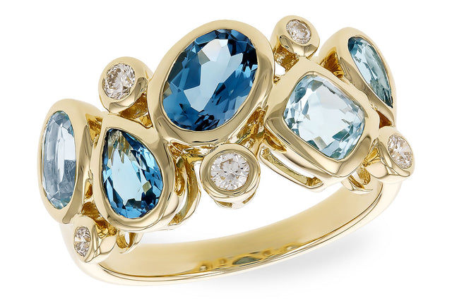 14K Yellow Gold Tri-Color Blue Topaz Mixed-Shape Bezel Ring 2.75ctw