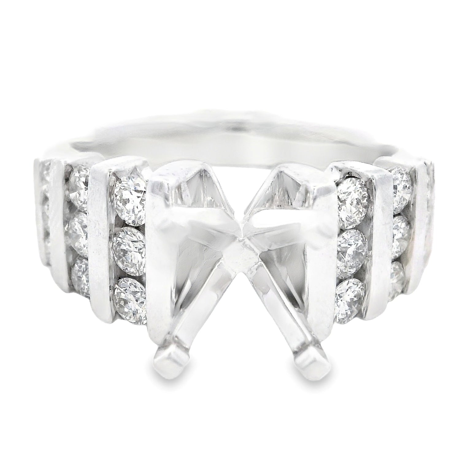 14K White Gold Tension-Set Diamond Semi Mtg .89Ct Total Diamond Weight