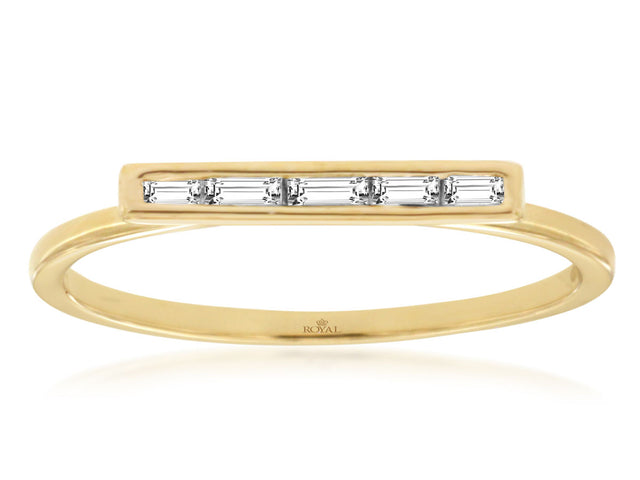 14K Yellow Gold Horizontal Baguette Diamond Bar Stack Ring .08Ct Total Diamond Weight