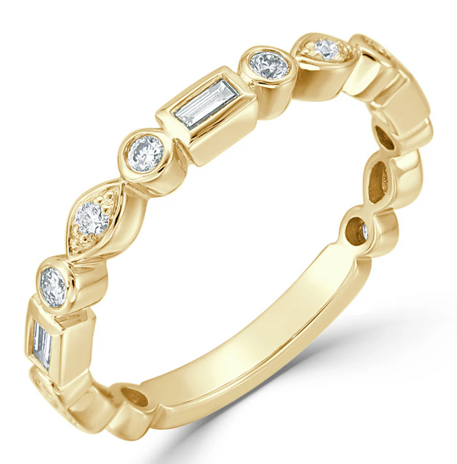 14K Yellow Gold Alternating Shapes Diamond Stackable Ring .30Ct Total Diamond Weight