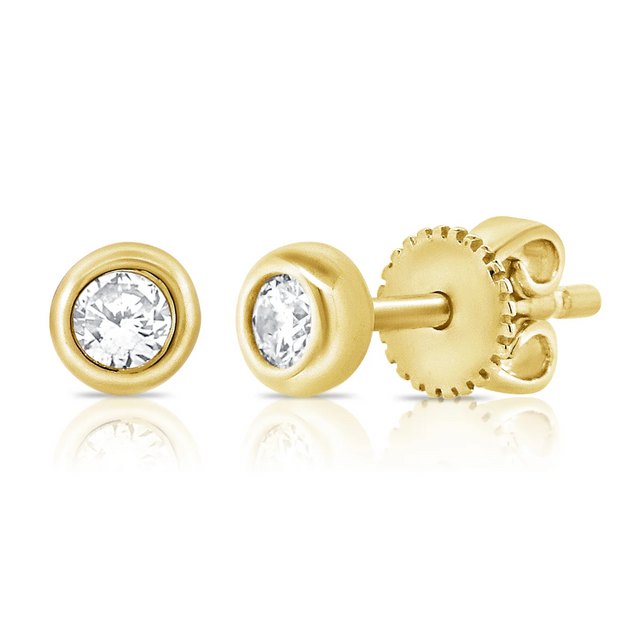 14K Yellow Gold Petite Bezel-Set Round Dia Studs .10Ct Total Diamond Weight