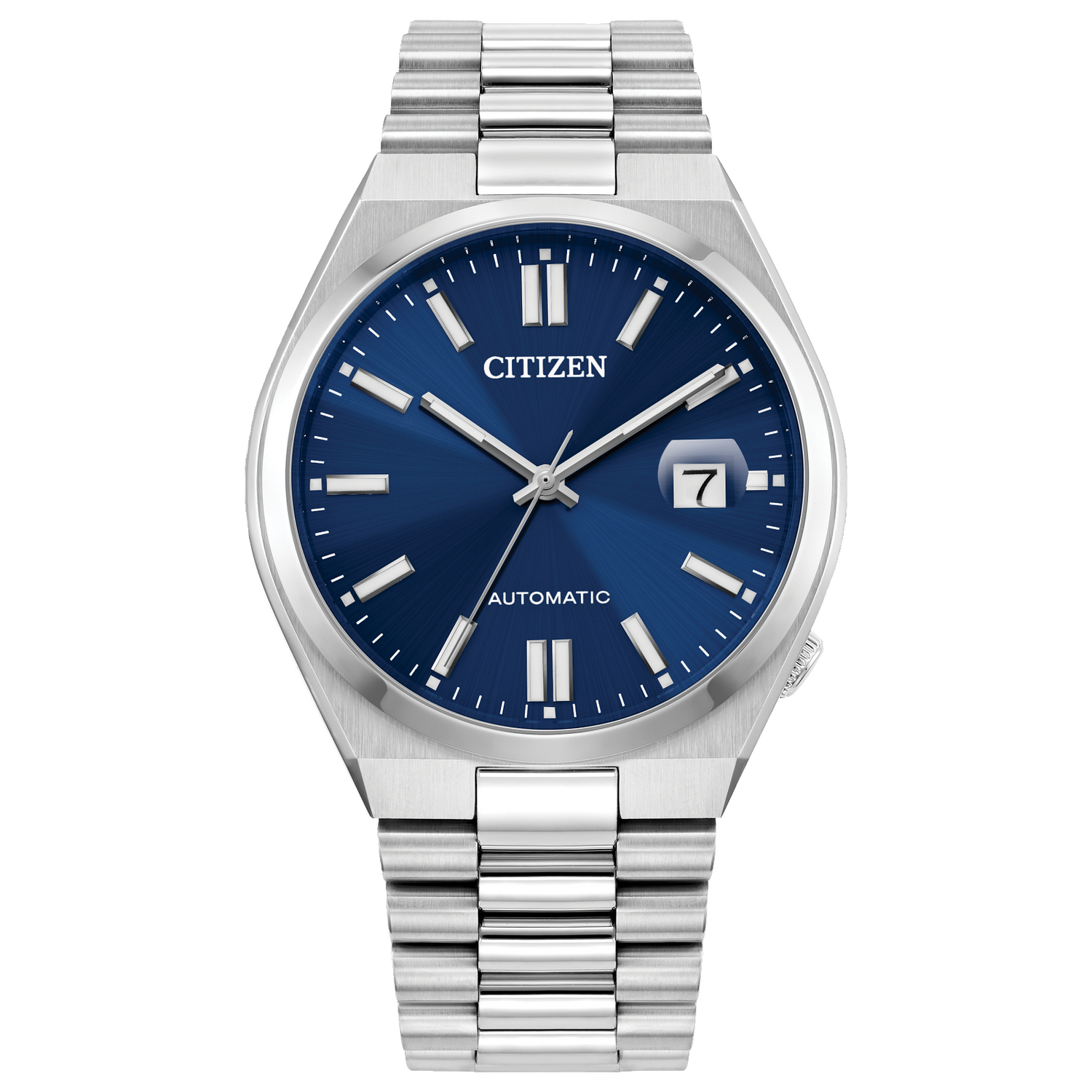 The TSUYOSA Automatic, from the NJ015 series, brings ultramodern sports styling right to your wrist. Executed in a versatile 40mm footprint, the sophisticated design of the watch makes a strong impression via a silver-tone stainless steel case and a seamlessly integrated, matching bracelet. Underneath an anti-reflective sapphire crystal, the sporty timepiece makes use of a sunray blue dial, with a 3 o’clock date window and contrasting silver-tone details adding to its classic aesthetic. Powered by an automatic movement and offering up to 50 meters of water resistance, the refined timepiece is a daily wearing choice ready for work, play, and everything in between. Caliber 8210.