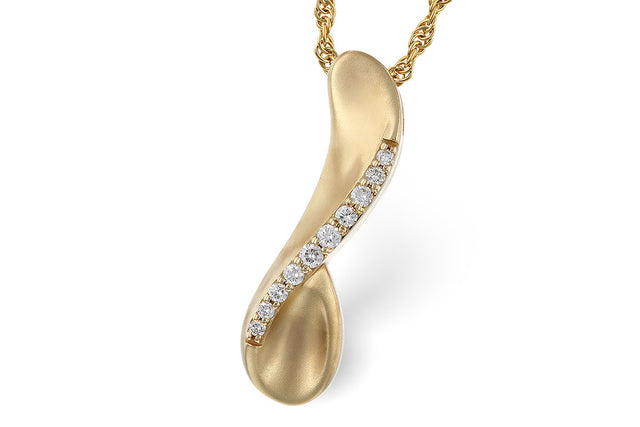 14K Yellow Gold Satin Finished Abstract Diamond Pendant .14Ct Total Dimaond Weight