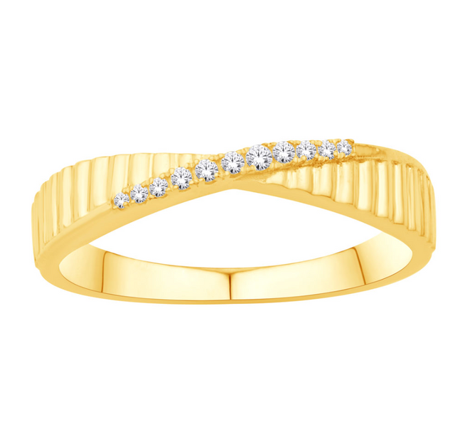 14K Yellow Gold Ribbed Diamond Fashion Band .07Ct Total Diamond Weight
