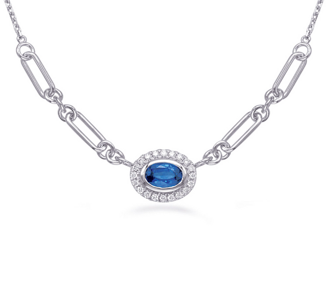 14WG Sapphire Diamond Halo Paperclip Necklace